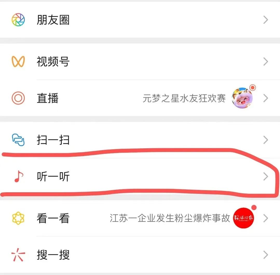 (“听一听”在微信发现页面的默认位置)