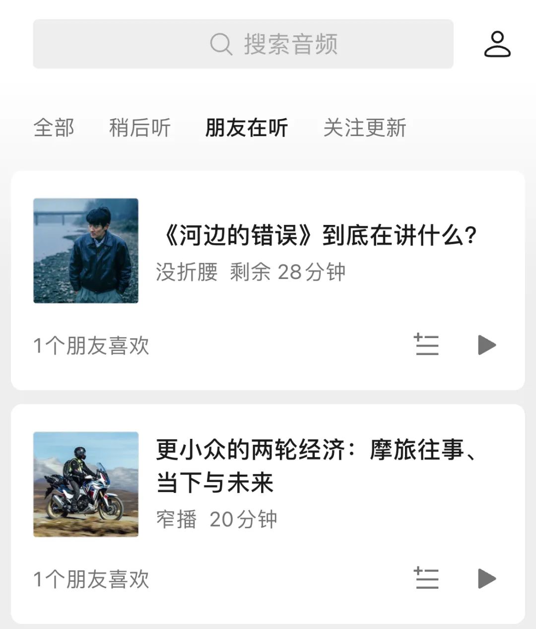 由于腾讯生态内部缺乏一个喜马拉雅或小宇宙那样的音频(非音乐)APP,所以微信“听一听”的音频功能页面能明显比音乐更简陋一些,其内容主要有两大来源:第一是微信公众号内嵌的播客音频,第二是对部分公众号文章的自动语音转制;在内容页面点击关注作者,关注的对象也是公众号。简而言之,音乐功能是以视频号为轴心的,音频功能却是以公众号为轴心的。这也是近年来微信公众号为数不多的唱主角的机会。