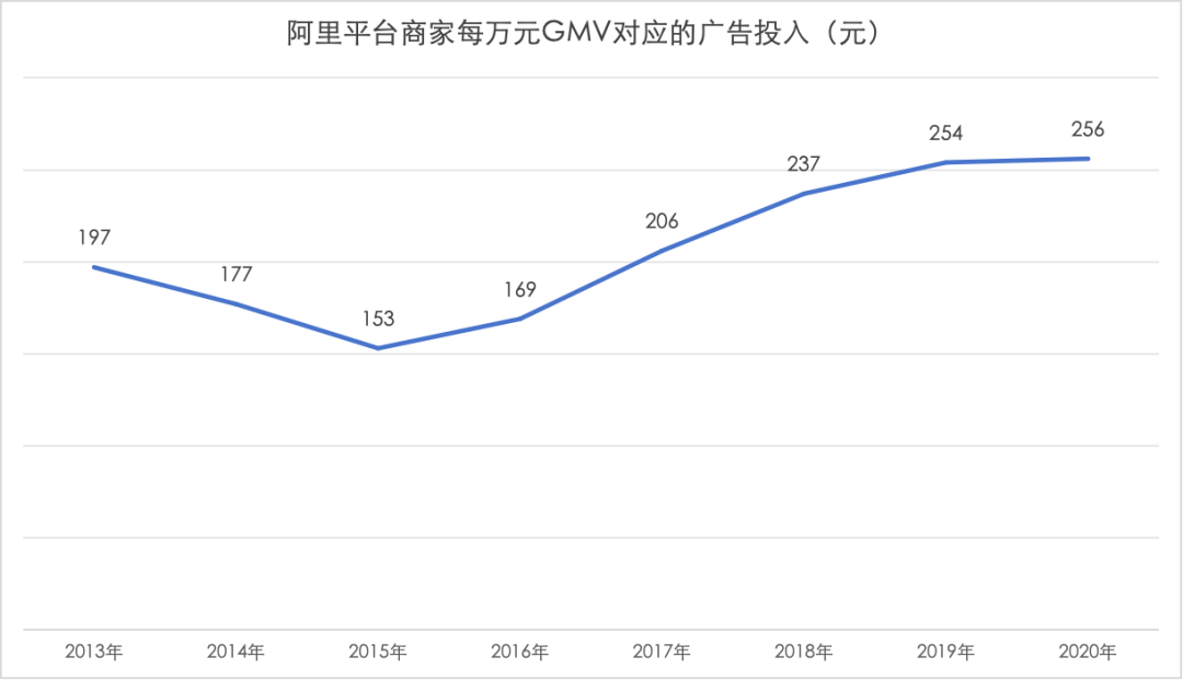 流量成本居高不下也并非一日之功。2018年时电商行业的平均流量成本就已经到了10%-40%,也就是说,商家卖一件服装价格是1000元,有可能400元是给平台的广告费。2021年戎美股份上市时,其招股书披露在淘宝的推广费用两年累计增长147.71%。
