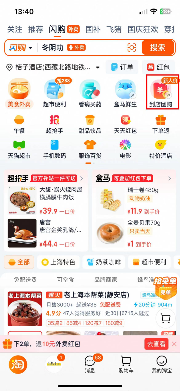 9月20日,淘天旗下淘宝闪购悄悄搞了件大事——上线“到店团购”业务,首波就覆盖上海、深圳、嘉兴三城核心商圈。茶饮、正餐、自助餐这些“干饭刚需”,同步登录淘宝闪购、支付宝、高德三大入口,不用切换APP就能薅羊毛。