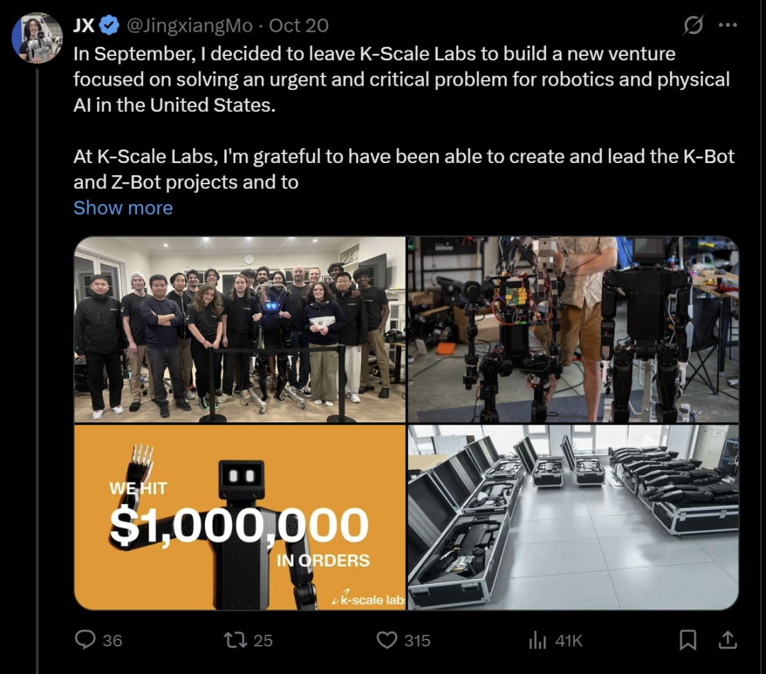 2025年11月,K-Scale Labs(KSL)CEO Benjamin Bolte(本杰明)发出长文告别信:解散团队、全额退款并开源所有技术。