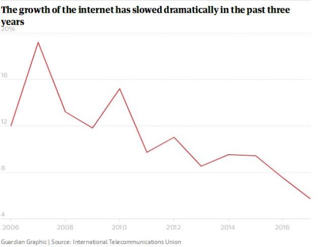 在过去三年里,互联网发展速度急剧放缓