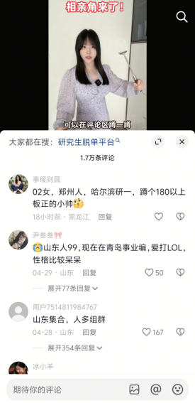 这种刚需的外在表现之一是,抖音评论区变成了“相亲角”。