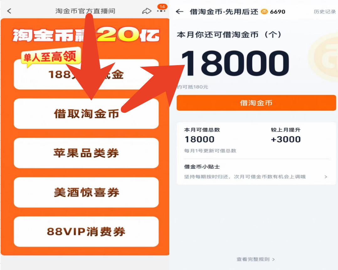 今年更是推出了淘金币的提前支取使用,这种用户资产的透支同样达到了暗折的效果,而且提高了淘金币的使用心智,不再是可有可无的鸡肋优惠,而是代表一种新生的优惠购物路径:用户浏览后,再从淘金币入口进入下单,每单可以省上几毛、几块钱,未尝不是件乐事。
