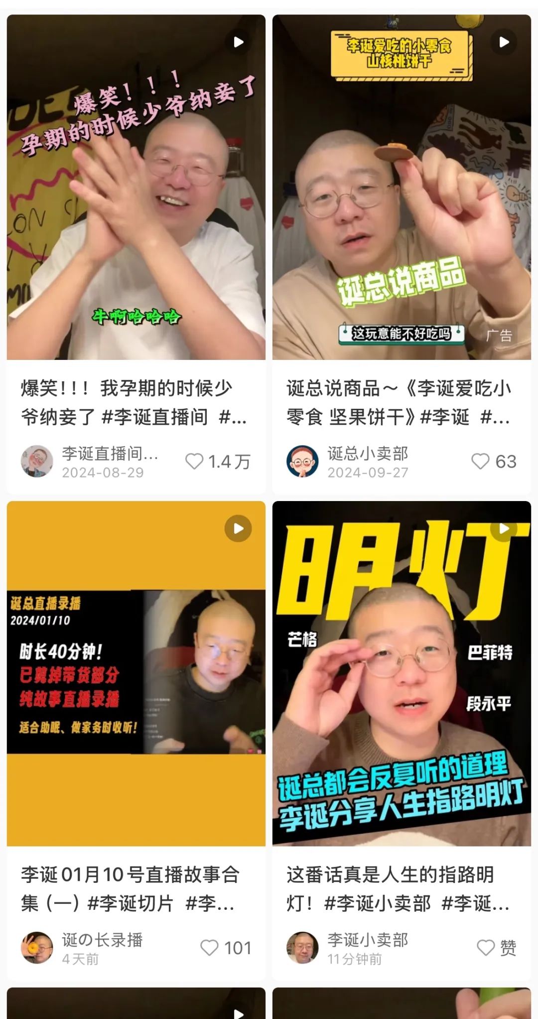 知危看到,拿到李诞授权开始正常运营的账号,名字都差不多,例如@诞的小卖部精华 @李诞解忧小店 @李诞直播间的高能投稿 等等。2024 年 9 月,李诞将直播切片业务的全渠道授权给了交个朋友,以上账号的主页挂出的 MCN 机构名现在也都是 “ 交个朋友分销 ”。李诞甚至还曾在直播的时候说过,如果大家想兼职赚点零花钱,可以联系他的小助理,询问做切片剪辑的具体事宜。