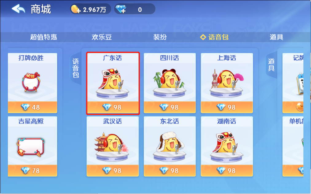 玩家通过游戏币或者现金购买道具的场景。比如:《欢乐斗地主》的语音包、装扮 同一个游戏可能出现多类付费混合的情况,既有游戏币场景,又有道具直购场景。当然也有一些游戏仅有道具直购场景,即对玩家来说都是直接通过现金购买道具。